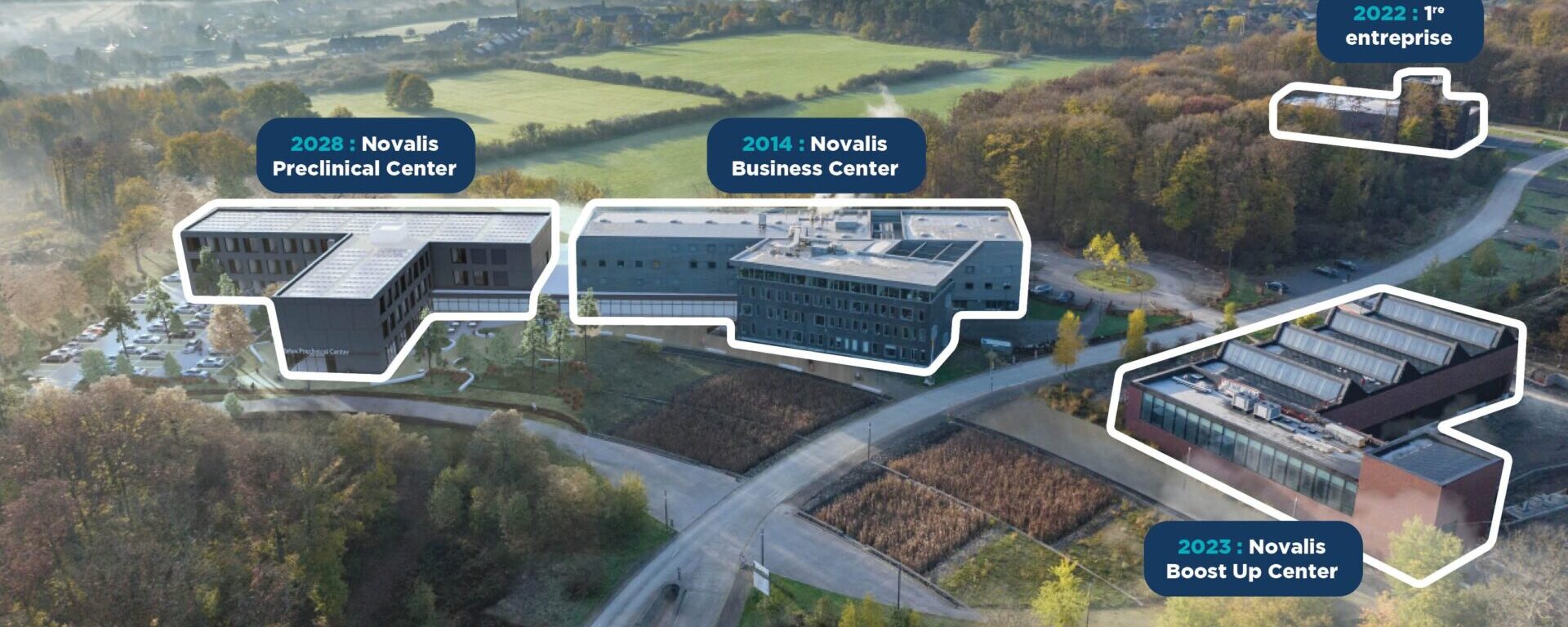 Since 2014, IDELUX has been offering a special place dedicated to biotechnology in the province of Luxembourg. The Novalis Science Park (10 hectares) is well located in Aye (Marche-en-Famenne), in the heart of the technological ecosystem of the Greater Region, close to 5 major Walloon universities.